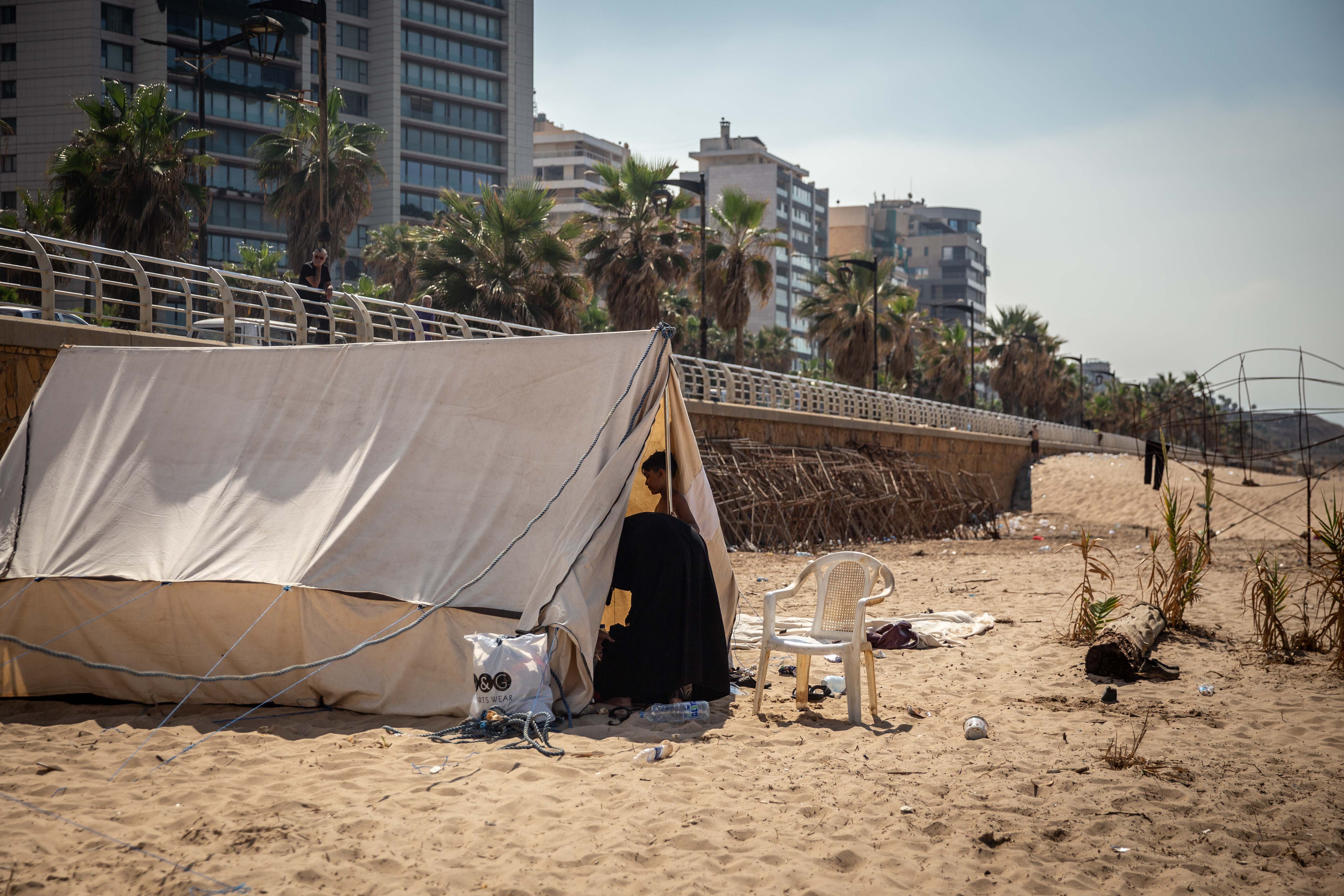 Après une nuit entrecoupée par le bruit des 17 bombes lancées sur plusieurs quartiers de la ville, je me rends à Ramlet al-Baïda (« sable blanc » en arabe), la plage publique de Beyrouth, pour rencontrer des personnes déplacées. Nous sommes le 3 octobre et, comme tous les matins depuis trois semaines, Beyrouth se réveille mal en point. On ne se demande plus comment on va, mais comment on a dormi ou comment on survit.